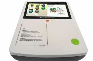 Modern in design, light in weight, compact in size. Simultaneously acquisition of 12 lead, full screen display of 3 channel ECG waveforms.
